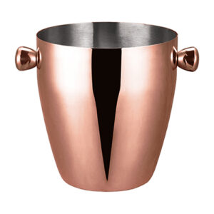 Botella de acero inoxidable exterior e interior electro-plateado en cobre. Presentación en bolsa plástica dentro de caja de cartón negra.